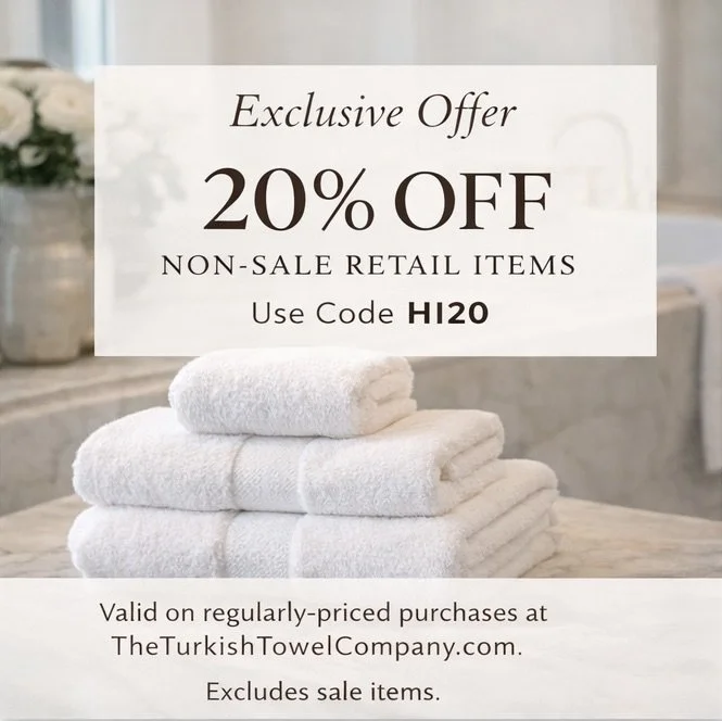 If you’re curious to experience the difference for yourself, The Turkish Towel Company extended a 20% discount on all NON-SALE RETAIL ITEMS available on their website.