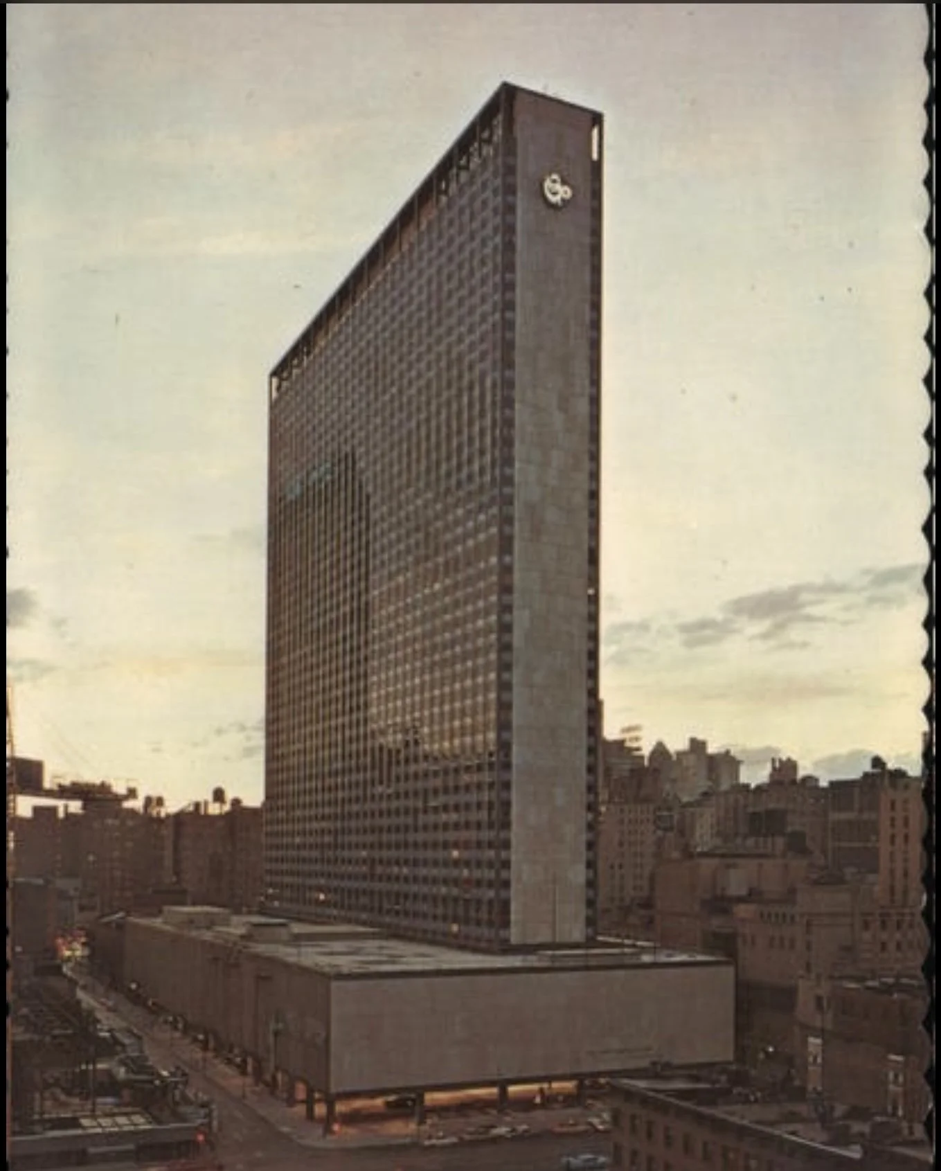 The project itself was an interesting collaboration between the Uris Buildings Corporation, The Rockefeller Corporation, and Hilton Hotels. It would rise to 44 floors and a construction price estimated at $75m…in 1963…today that would be 10x that amount $795 million.