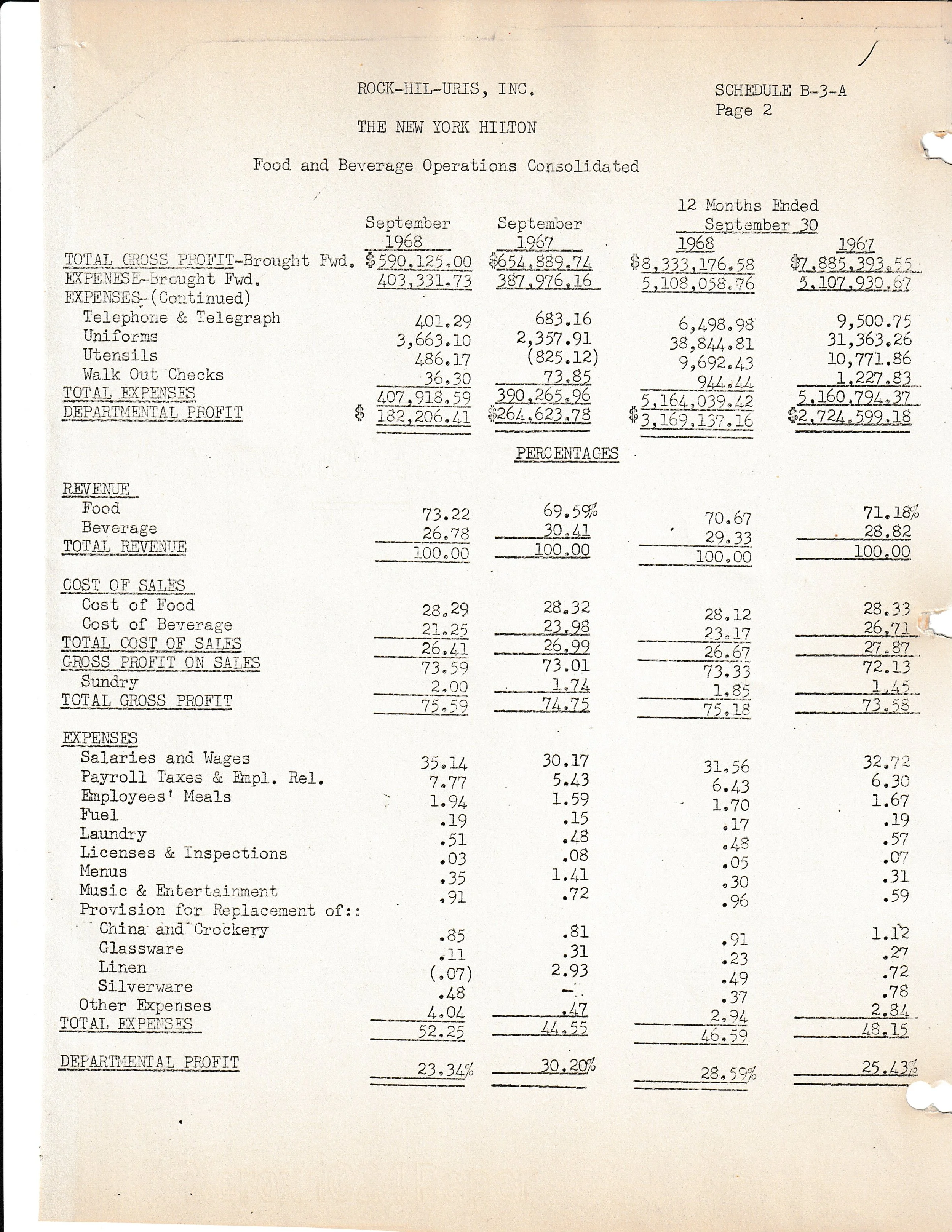 In May 1968, my dad received a written commendation from the Senior Vice President of Hilton Hotels for “excellent results in Food & Beverage profit… your increased food profit, in spite of decreased sales, is especially commendable.”