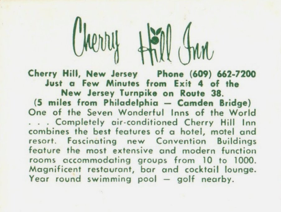 Amenities at the Cherry Hill Inn, 1971